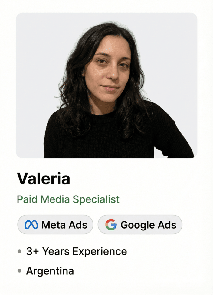 We place full-time Google, Meta Ads specialists with 3+ years’ experience into your team – working EST hours and ready to scale your ad campaigns. No Contracts. Get a match in 5 days!