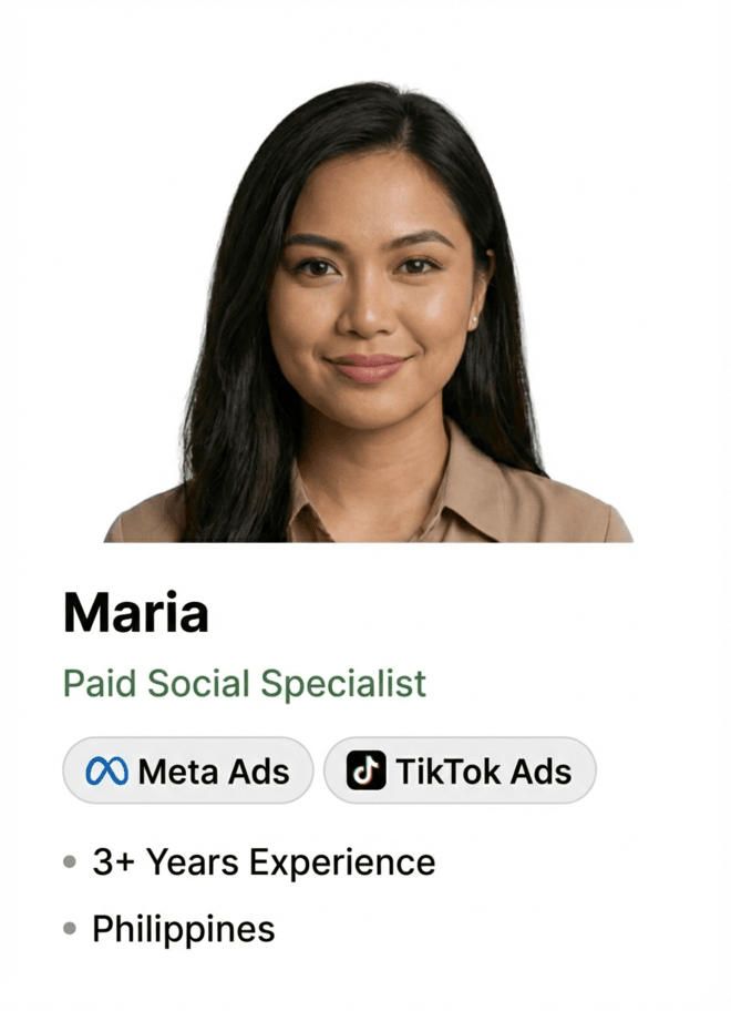We hire highly skilled professionals from the Philippines, LATAM, and South Africa, regions known for strong marketing talent, excellent communication, and agency experience.